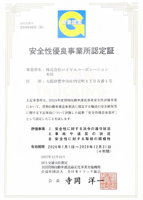 日々の業務において安全運転を徹底し、地域社会の信頼に応えてきた社員たちの努力が認められたことを、当社一同大変誇りに思っております。